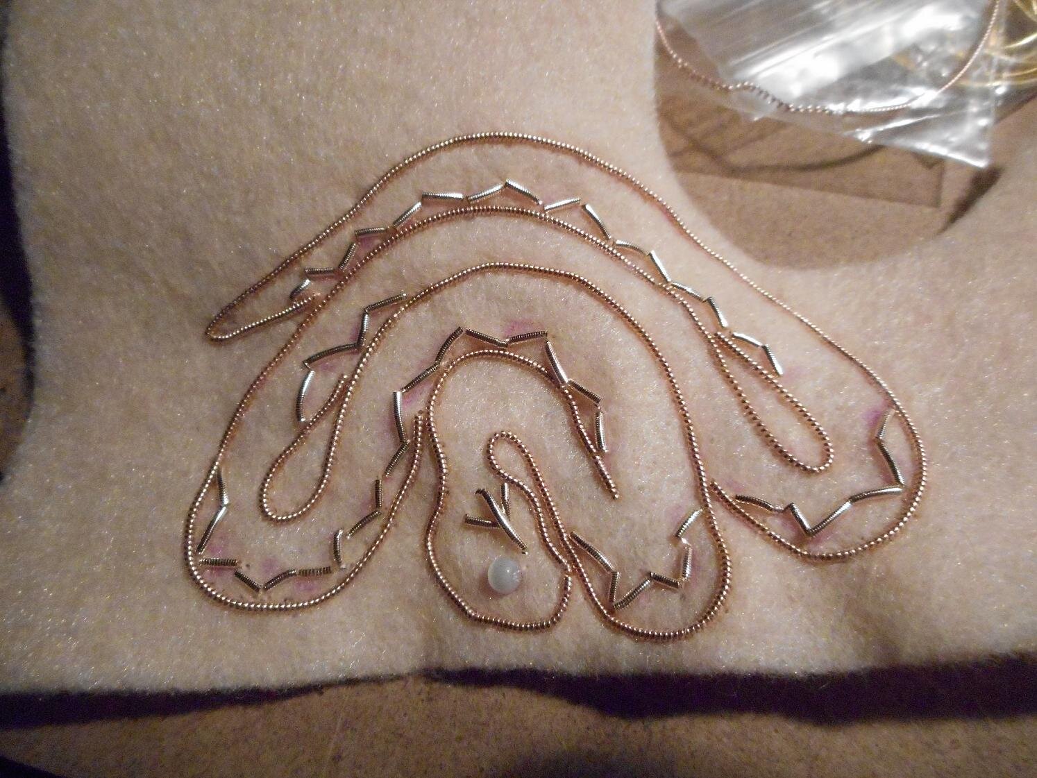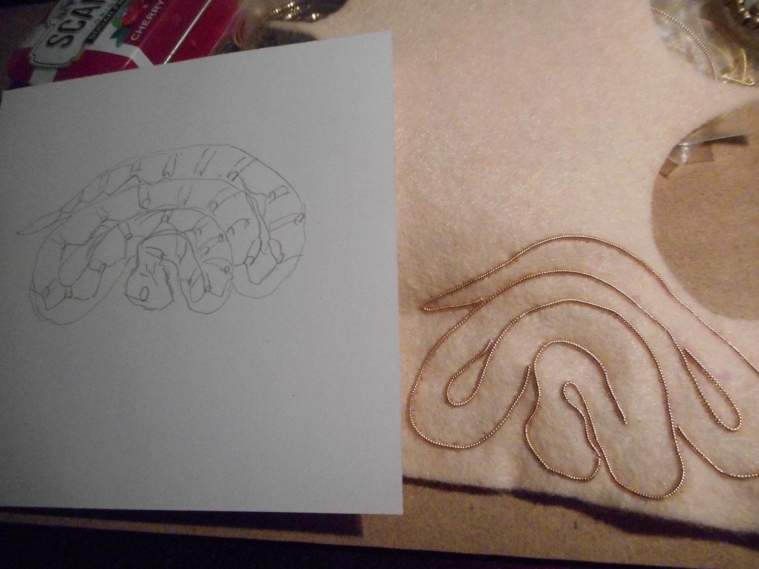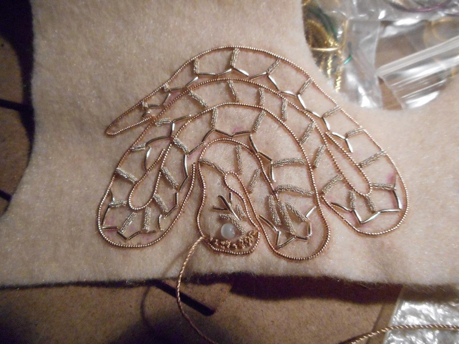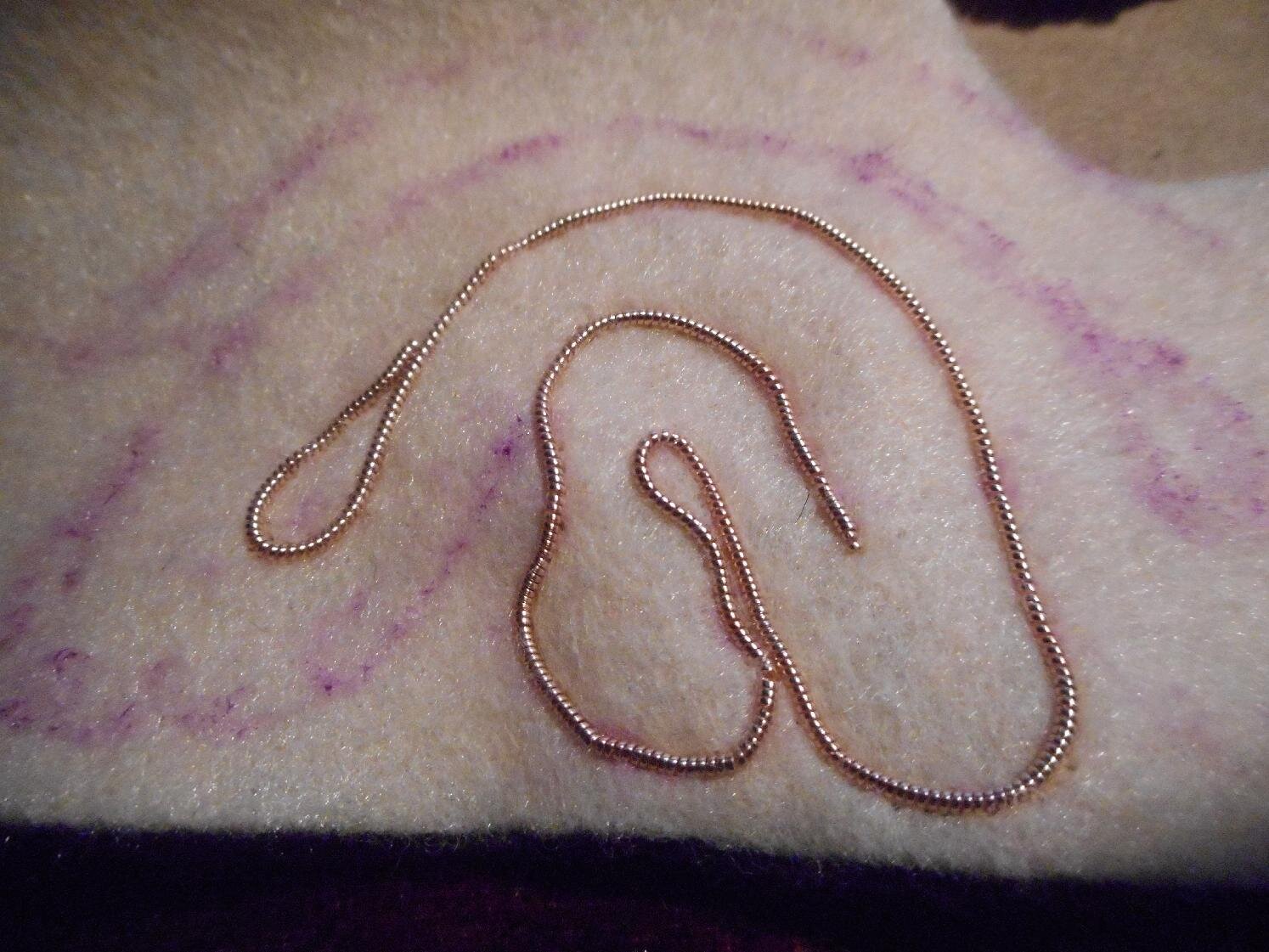 Chanda 16 Опубликовано: В субботу в 15:46 Буква сентября - "Э". Вряд ли успею, но всё же, хочется сделать брошь в форме эфы (а заодно, попробовать вышивку канителью и трунциалом). Нарисовала на фетре контуры и начала выкладывать канитель. Поделиться сообщением Ссылка на сообщение Поделиться на других сайтах