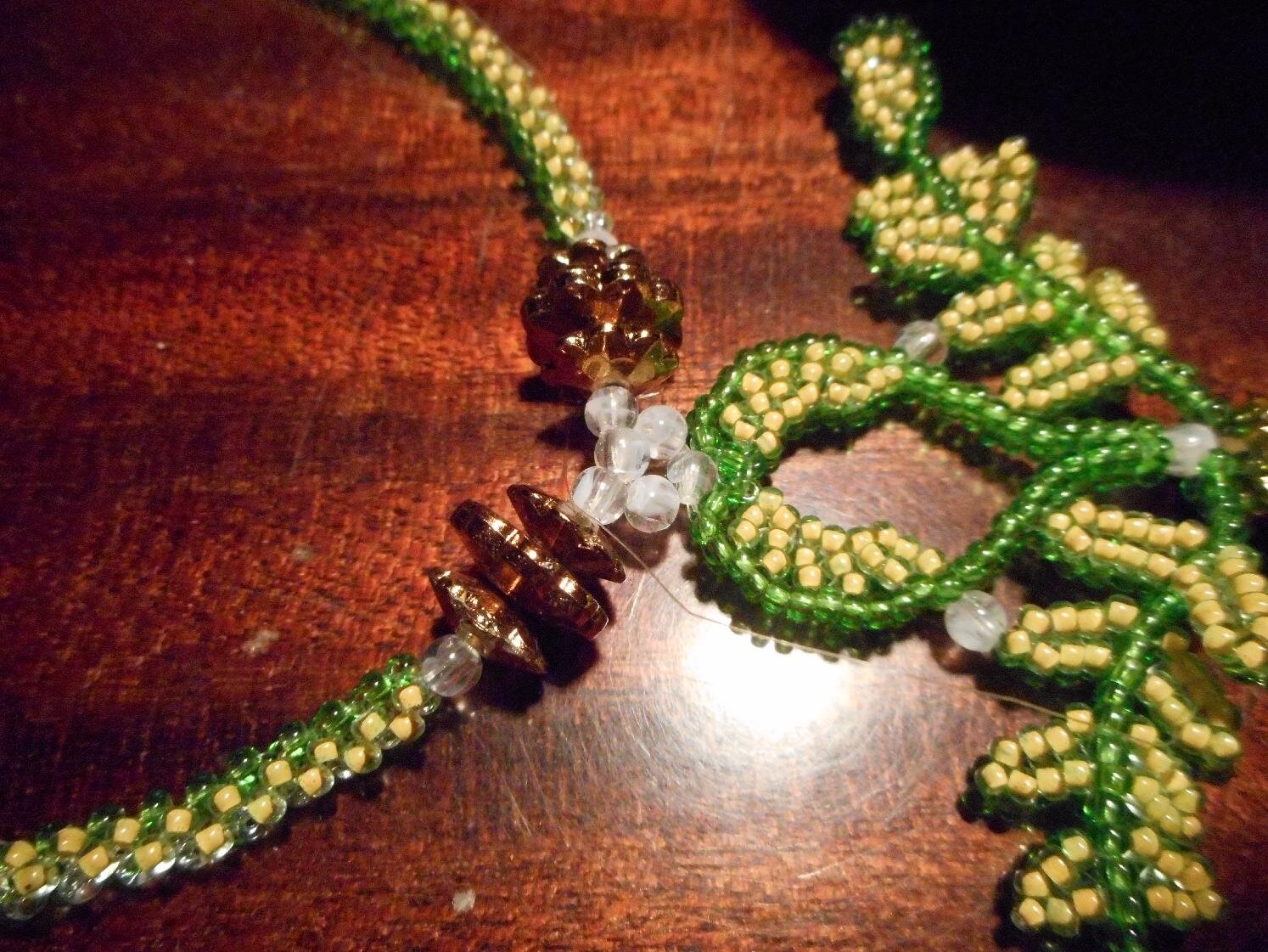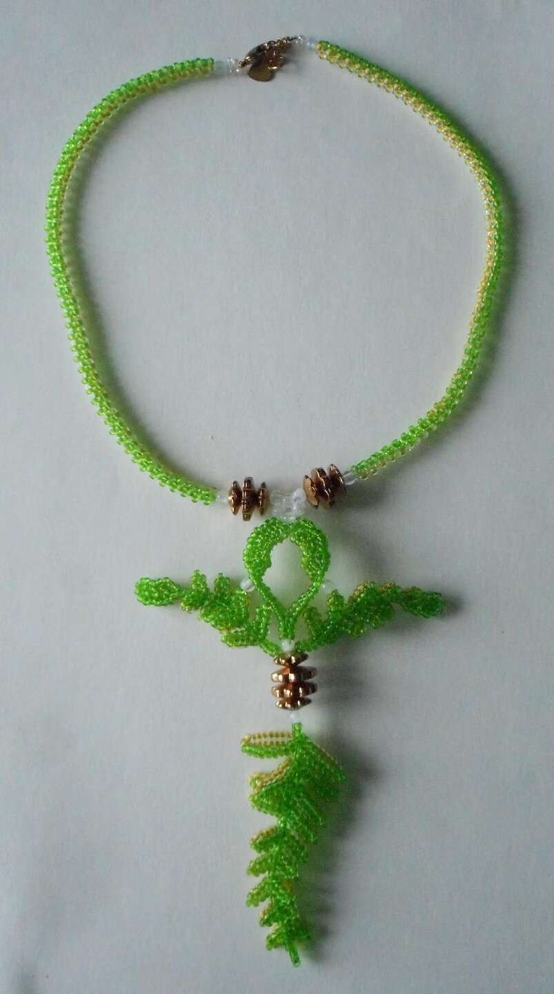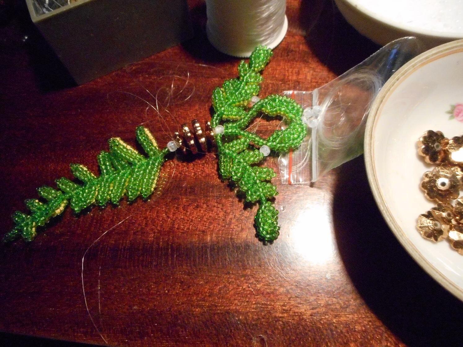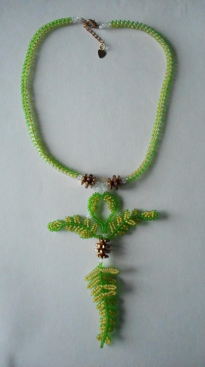 Chanda 16 Опубликовано: 14 апреля Цвет апреля в марафоне - зелёный. Плету колье-папоротник. В основе каждой вайи (так у папоротника называются веточки) полоска ндебеле. От неё в стороны выплетаю маленькие, слегка скошенные полоски. По второй стороне плету другим бисером а затем стягиваю через край. Центральные готовы. Поделиться сообщением Ссылка на сообщение Поделиться на других сайтах